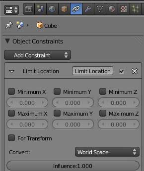 Utile pour l'animation. Lorsque la case est décochée, vous pouvez remarquer que lorsque vous dépassez les limites, les coordonnées de l'objet continuent à se modifier. Ainsi lorsqu"on désactivera la contrainte, l'objet viendra automatiquement se positionner sur ces coordonnées