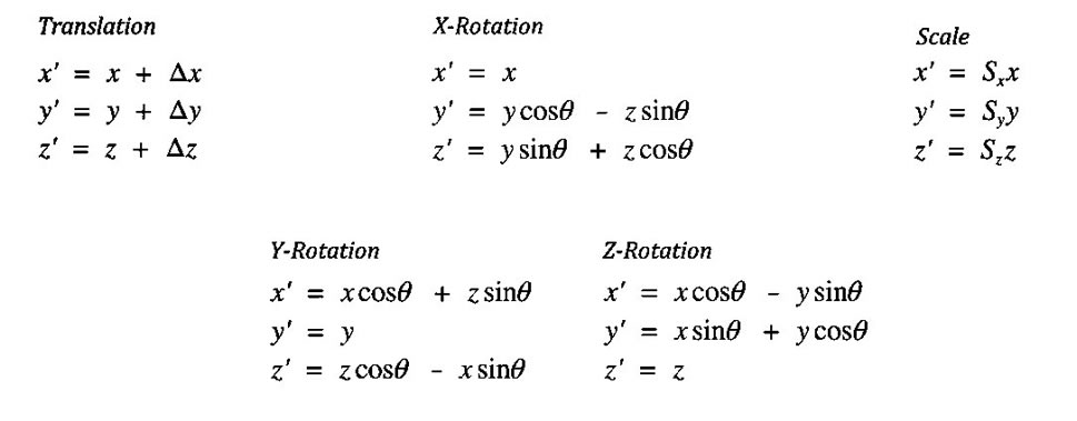 Ci-dessous l'ensemble des écriture des matrices que calcul Blender pour réaliser des rotations sur X ou Y ou Z.