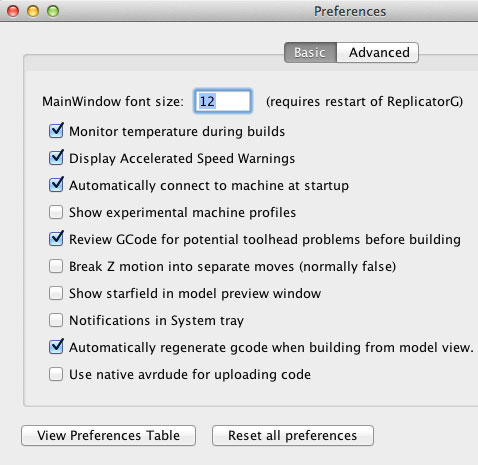Certaines préférences prennent effet que lorsque vous redemarez Replicator G.