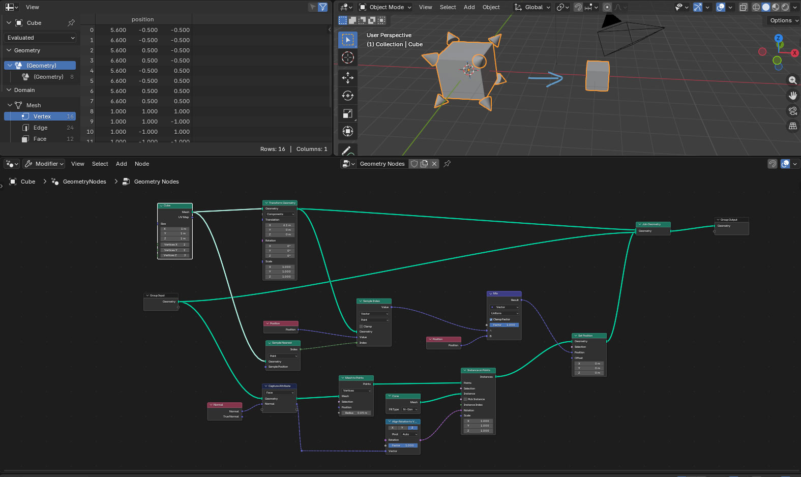 Voici différentes geometry réalisées avec le geometry node.Le morphing permet de passer d'un objet à un autre.