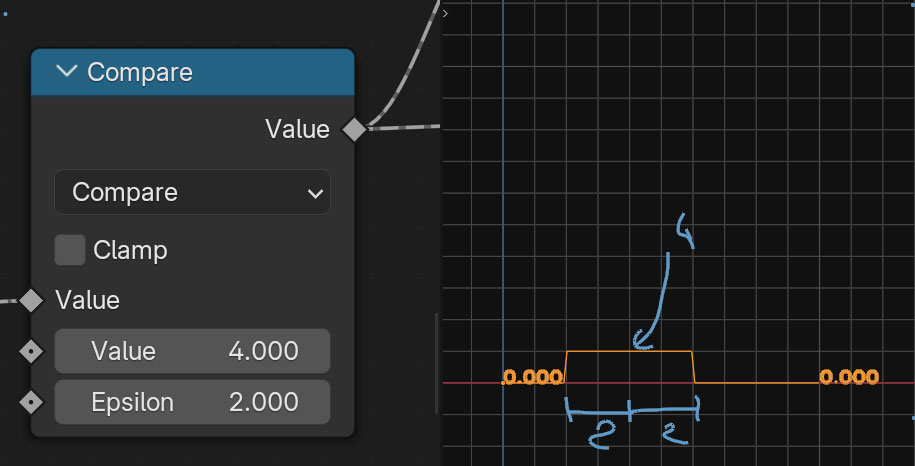 Produit 1,0 si la différence entre les deux valeurs d’entrée est inférieure ou égale à Epsilon.