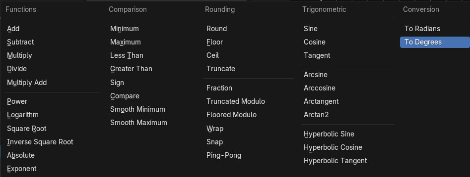 Le nœud Fract calcule la partie fractionnaire (frac) d'une valeur d'entrée en soustrayant le plancher de la valeur d'entrée de la valeur d'entrée. Le nœud Fract génère ensuite le résultat qui n'est que le reste décimal de l'entrée.
