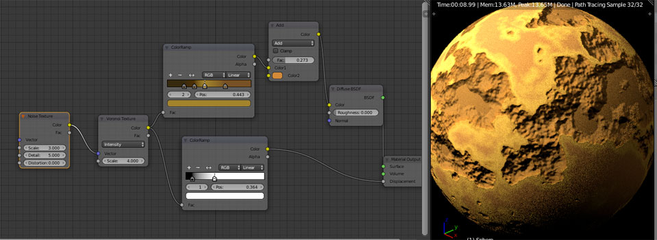 Texture procédurale. Utilisé pour réaliser des effets de martelages du cuivre (Dinanderie) ou pour des écailles.