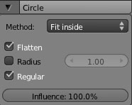 Après avoir sélectionné plusieurs vertices, cet opérateur va nous permettre de les transformer en cercle . Ce cercle sera par défault inscrit dans le périmètre des vertices sélectionnés. Il est possible de ne sélectionner qu'un seul vertex.